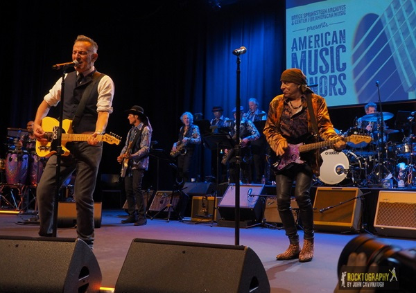 All of the show’s participants sat in audience when they weren’t onstage. Springsteen and Van Zandt, in fact, were in the front row, by the stairs to the stage, so they often were seen helping the others as they came and went.