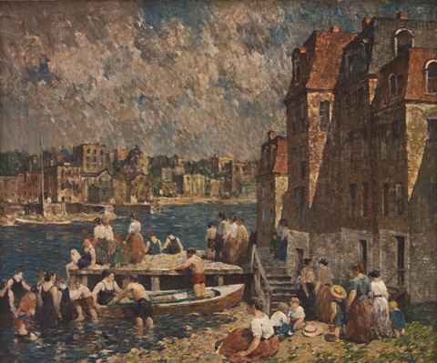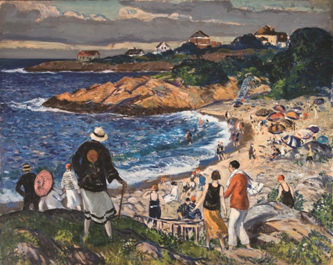 So, in other words, it’s an exhibition that you need to spend a fair amount of time with to really appreciate, as each painting is really a little world of its own. Like the dominant figure in Gifford Beal’s “Garden Beach” (above), who has her back to the viewer but is presumably gazing at the glorious beach and coastline in front of her, you’ve just got to stand back, relax, and take it all in.