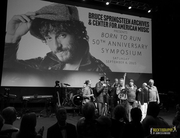 Springsteen told this story at the Born to Run 50th Anniversary Symposium presented by The Bruce Springsteen Archives and Center for American Music at The Pollak Theatre at Monmouth University in West Long Branch, Sept. 6. Like the album, the symposium was pretty much perfect, with nearly everyone who contributed to it and is still alive showing up to share their memories. And after a full day of panel discussions, the event was capped by a never-before-assembled (and probably never-to-be-reassembled) octet version of the E Street Band — Springsteen on guitar and lead vocals, Stevie Van Zandt on guitar, Garry Tallent on bass, Roy Bittan and David Sancious on keyboards, Max Weinberg and Ernest “Boom” Carter on drums, and Ed Manion on saxophone — playing two of the album’s greatest songs, “Thunder Road” and the title track, on the Pollak stage.