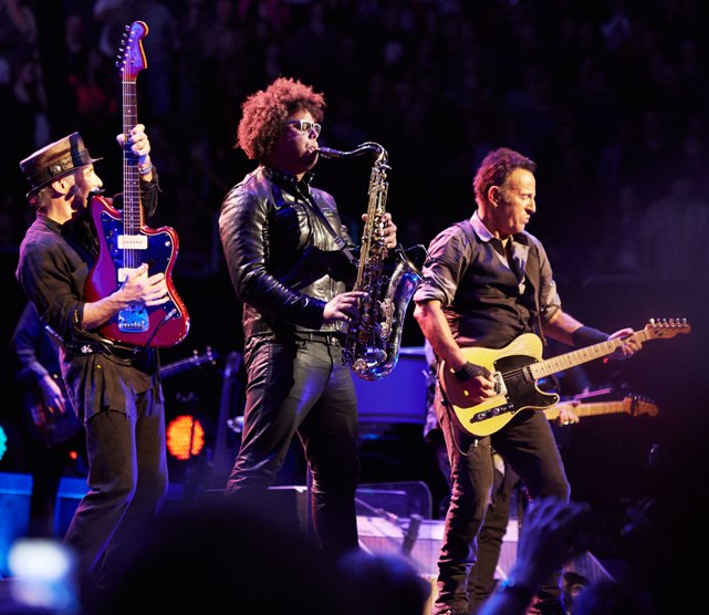 E Street Band members Nils Lofgren and Jake Clemons perform with Bruce Springsteen.