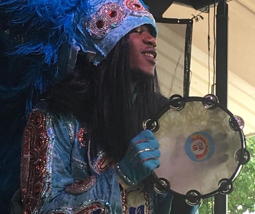 J’Wan Boudreaux is still quite young, but he seems to have this music in his bones: He and the band performed Mardi Gras Indian standards such as “Little Liza Jane,” “Hey Pocky-a-Way” and “All on Mardi Gras Day” with percolating funk beats and virtuosic horn solos. More than any other music on this day, it seems to have been transported — directly, magically — from the streets of New Orleans to a rural setting in Northwestern New Jersey.