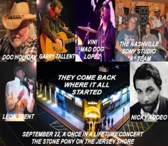 Original E Street Band members Garry Tallent and Vini “Mad Dog” Lopez will both participate in a Sept. 22 concert at the Stone Pony in Asbury Park featuring Doc Holiday and his Nashville Sony Studio A Team & Friends. “They come back where it all started,” says a promotional photo collage Holiday posted on his Facebook page.