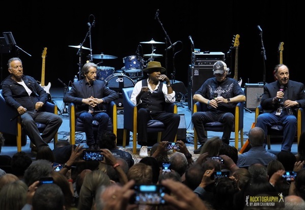 The event was presented by the Bruce Springsteen Archive & Center for American Music at Monmouth University, at the West Long Branch school’s Pollak Theatre. Springsteen was not officially confirmed to attend ahead of time, but appeared in a one-on-one discussion with Archive executive director Robert Santelli about his songwriting for the album, and with E Street Band members Garry Tallent, Vini Lopez and David Sancious in a panel discussion about the making of the album.
