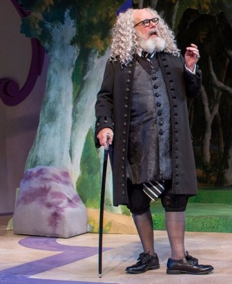 The play’s seventh character, Baliveau, doesn’t play a huge part in the plot, but gets many of the biggest laughs, thanks to the over-the-top antics of actor John Ahlin. Francalou’s friend, Damis’ uncle, a judge and an insufferable blowhard, he improbably embraces the opportunity to act in Francalou’s play with great gusto.