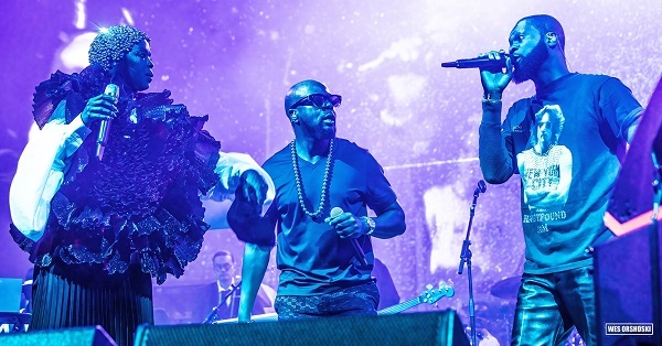 Hill has not released a studio album since Miseducation. Nor have The Fugees have released a studio album since 1996’s The Score, though group member Wyclef Jean has been prolific as a solo artist, and the third member of the trio, Pras Michel, has two studio albums to his name (released in 1998 and 2005). But whatever the issues are that have kept Hill from releasing a follow-up, or The Fugees from continuing to record together or tour more frequently … they seemed very far away throughout the Newark show. Hill seemed fully engaged. And she stayed onstage for more than two hours before wrapping the evening up after midnight — after singing “Happy Birthday to You” to Jean, who turned 54 on Oct. 17, and then reprising “Fu-Gee-La.”