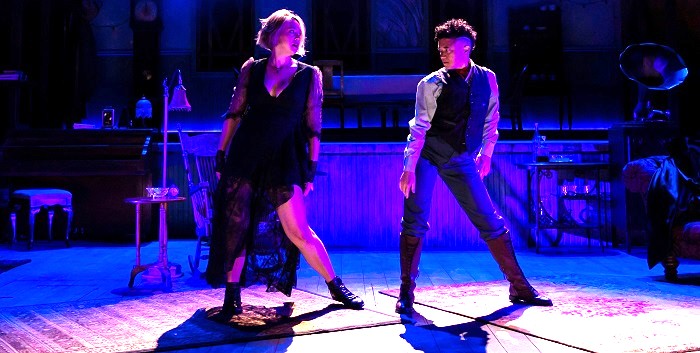 This is probably the first Chekhov production to feature a selfie. And a macabre dance segment. Masha (played by Annelise Lawson), one of the three sisters, and the army officer Vershinin (Rami Margron) express their attraction to each other through a dance, set to Heart’s “Alone,” that’s choreographed as if it’s from an ’80s MTV video. The elderly servants of the play’s central family are depicted via life-sized puppets (manipulated by Nick Ong and Rega Simms).