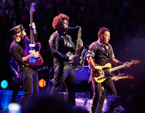 From left: E Street Band members Nils Lofgren and Jake Clemons, with Bruce Springsteen.