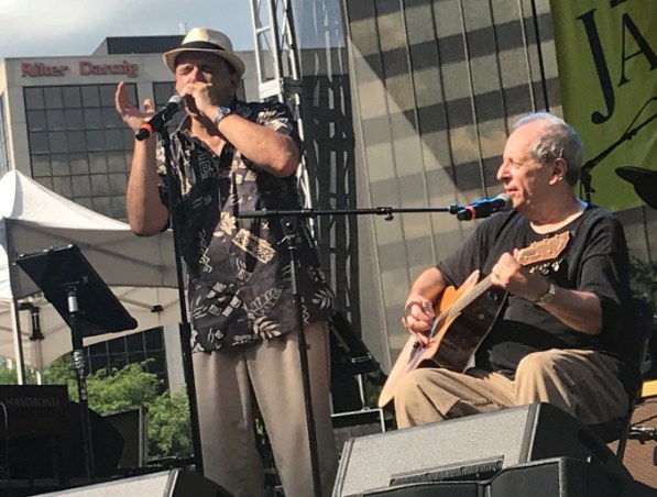 Rob Paparozzi, left, performs with Steve Katz at the 2019 Morristown Jazz and Blues Festival.