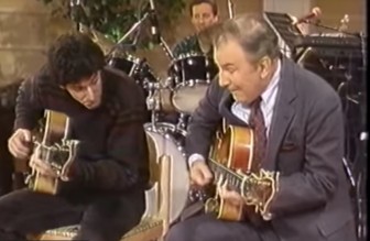 I don’t know what the show is, or what year the clip is from (though I’d guess early 1980s). Whatever its origin, it’s just an amazingly dextrous guitar duet on the jazz standard, “Sweet Georgia Brown.” The two seem to be reading each other’s minds, as only family members can, throughout.