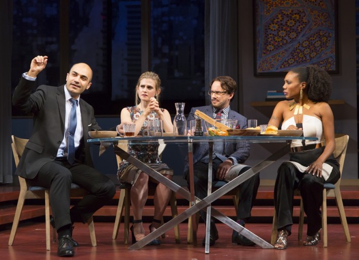 From left, Maboud Ebrahimzadeh, Caroline Kaplan, Kevin Isola and Austene Van co-star in “Disgraced,” which is at the McCarter Theatre Center in Princeton through Oct. 30.