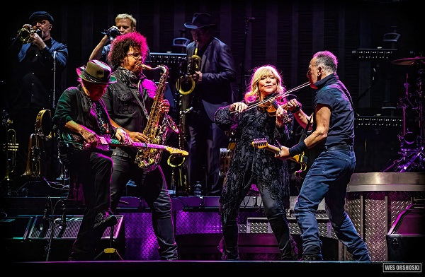 Earlier, he had really seemed to emphasize lines like “I’m ready to grow young again” (in “No Surrender”) and the rallying cry “Count the band in, then kick into overdrive/By the end of the set, we leave no one alive” (in “Ghosts”). And before “Mary’s Place, he asked a favorite question, “Is there anybody alive out there?”, and soon added, “because we are here tonight to bring the life out of ya. … I want to go to the land of the living. But I can’t get there by myself. I need you to get there with me.”